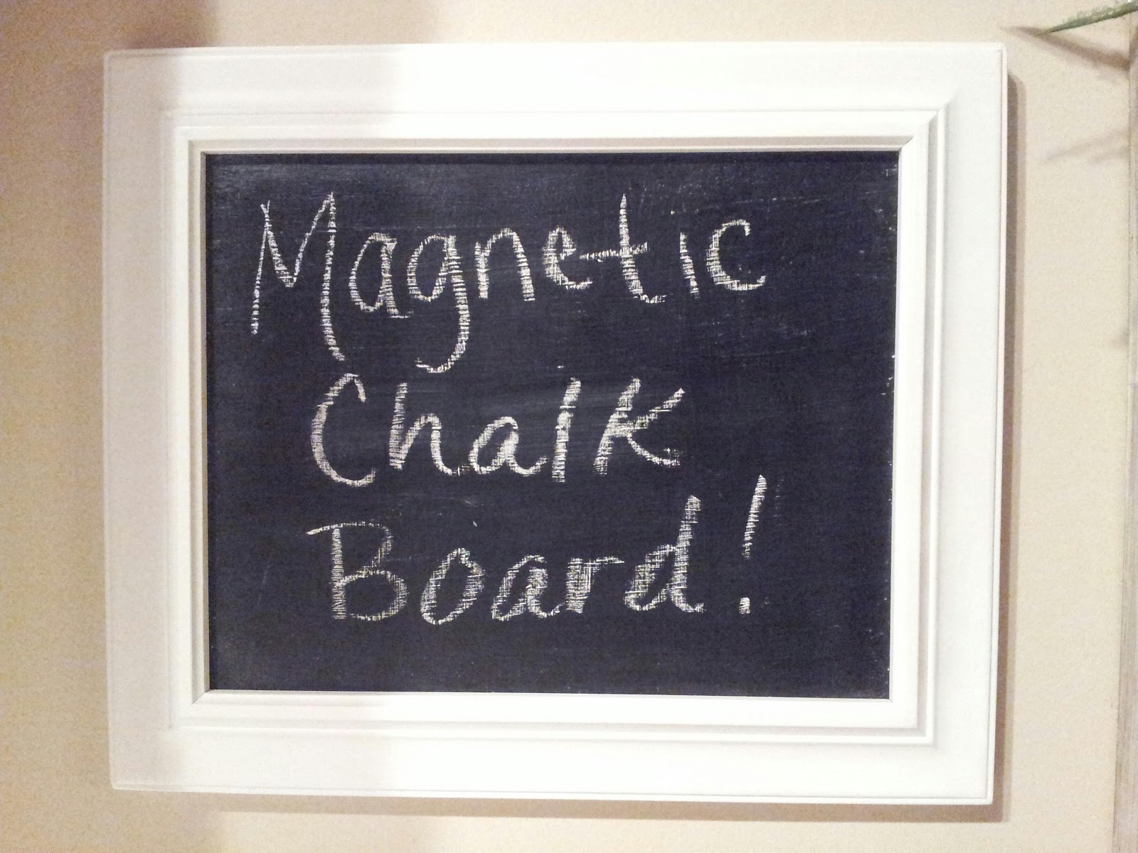 Lately I've seen chalkboards, memo boards, and magnetic boards so I decided to combine them all in one, and make a magnetic chalkboard. I found 2 new frames at the thrift store, they were already white so all I needed to do was paint the glass. At my local Michael's Craft store, I found Martha Stewart Magnetic Paint...there are probably other brands that make this, but I was so excited when I saw that there was actually Magnetic Paint, that I just bought it (plus I had a coupon, which always helps persuade me!) I also bought my chalkboard paint there too, but I did see a larger, cheaper bottle at Walmart later...so I bought that one too! The whole project was less than $10. I made 2 magnetic chalkboards to hang, plus I still have lots of both paints left for other projects. Check your specific brand for directions, mine said to apply 2-3 coats and let cure for 24 hours, the magnetic paint didn't seem quite as magnetic once I applied the chalkboard paint over it, but overall it still works and I am pretty happy with the results.