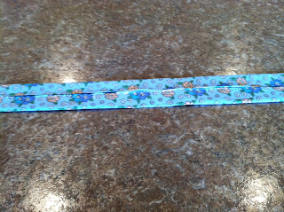 • Then fold this piece in half again (toward the middle) so you have no raw edges of material except on the two ends. Iron this so it will be easier to sew.