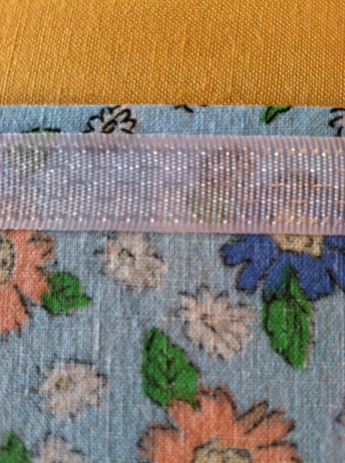 • I like a finished edge on the top of my tote so take on piece of the tote material and have the wrong side of the material facing you. I fold the top down about 1/2 inch and iron it. Then I fold it over one more time so the edge is not the raw edge. Now you can sew this down or you can use iron on hem tape. (I used this today but sometimes I just sew it).