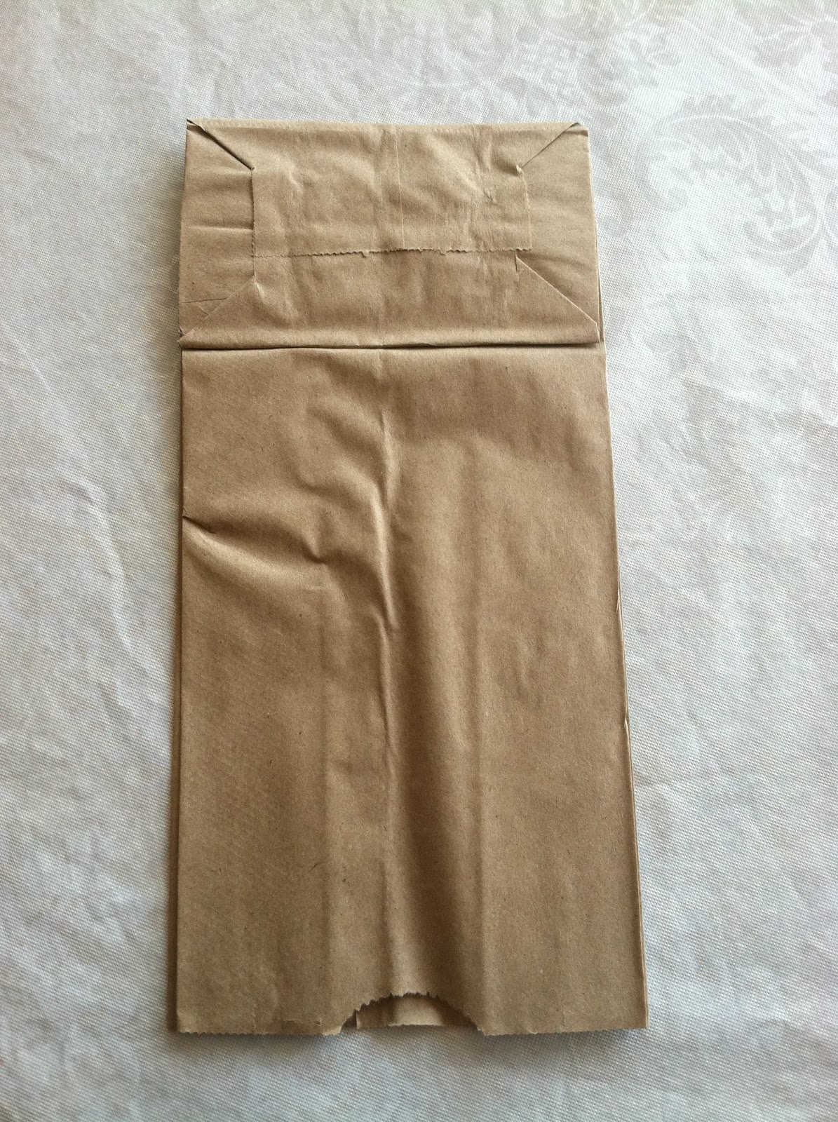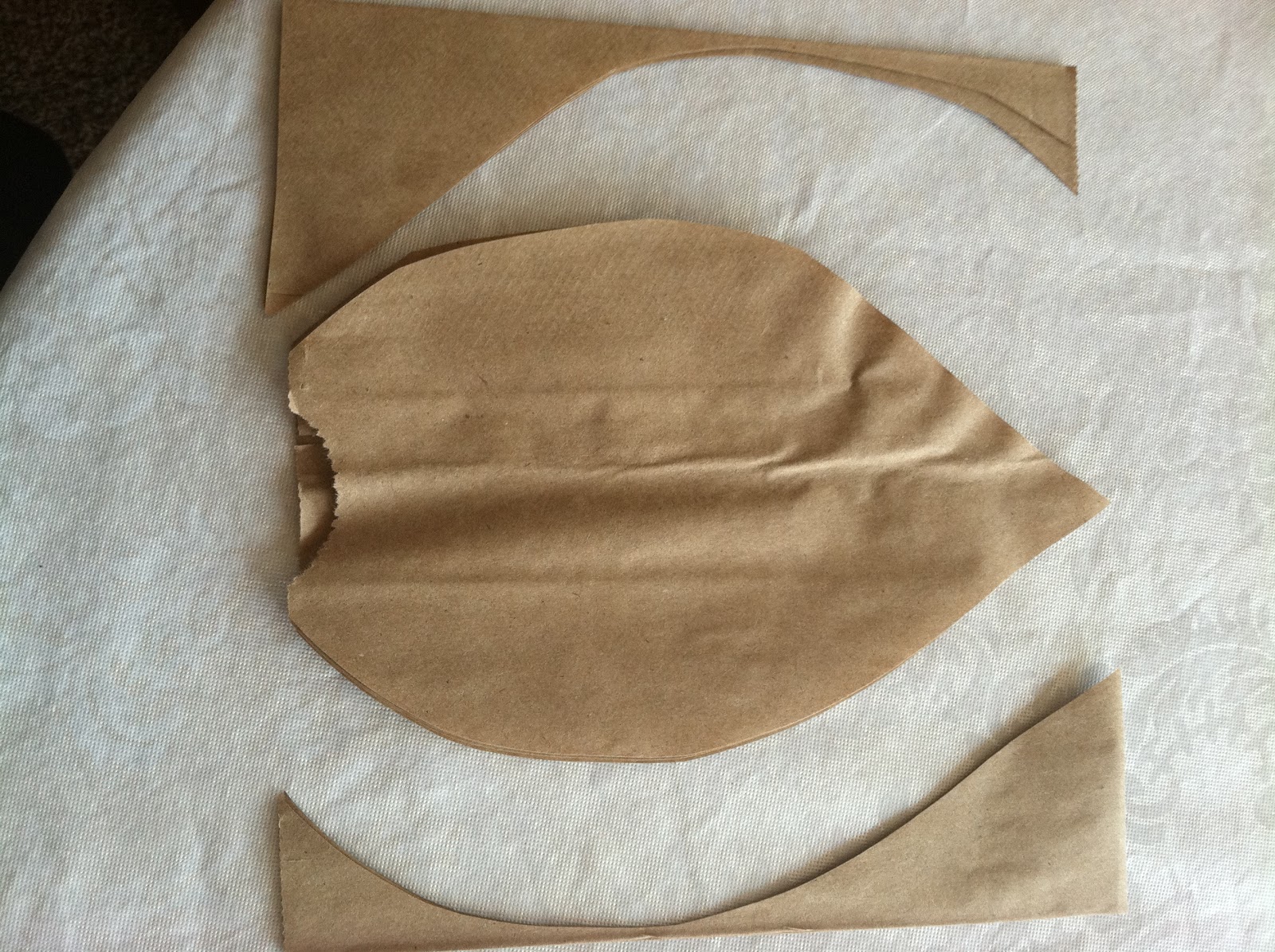 Cut the flap off the bottom of the bag, have it facing you. Start cutting a leaf, any shape you want from the bottom of the bag on the right side. I started at the bottom and tried to stay close to the sides to get a rather large leaf. There will be 2 smaller, folded leaves that will just fall out of your paper bag, keep those they will will be your smaller leaves. You will need 8 leaves per flower, so 4 bags equals 1 complete flower. I folded my large leaves in half too and kind of bent them a little before I glued them together. I also sponge painted a couple of them to have a little variation.