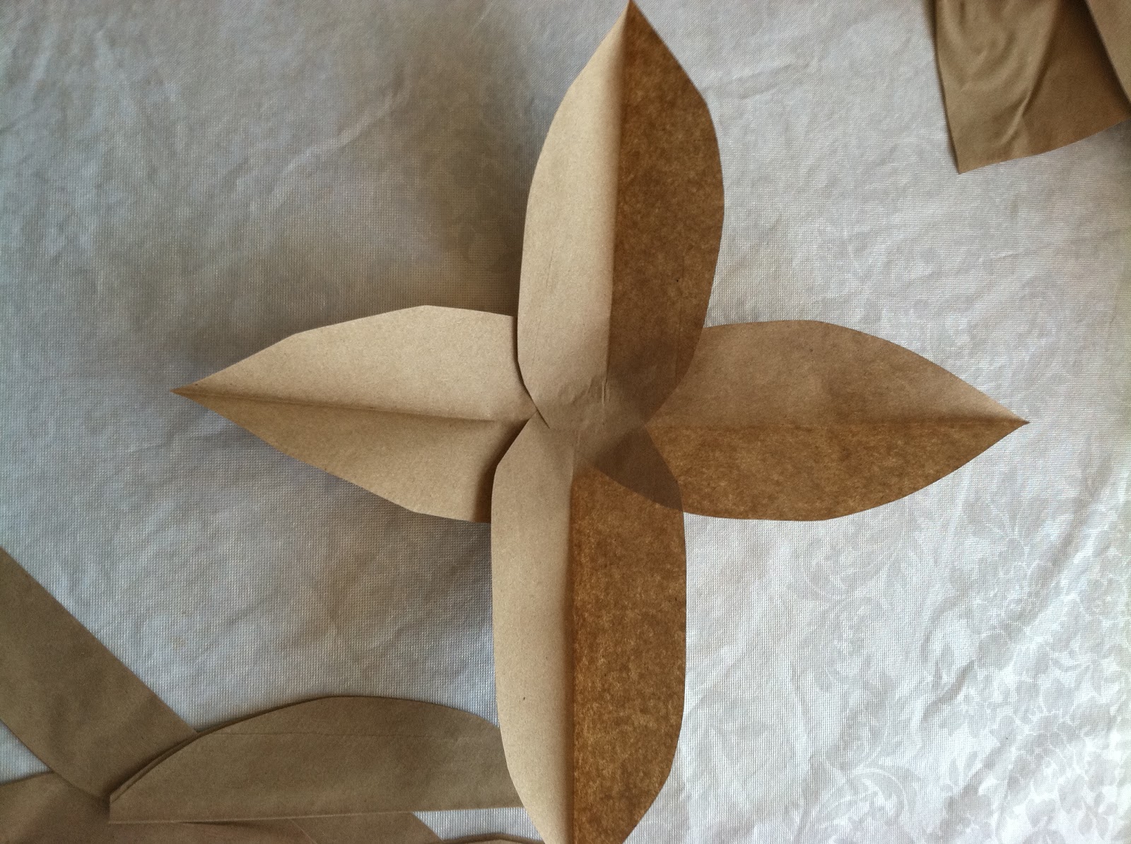 - Repeat that step with 2 more large leaves. Glue these to the first 2 leaves - so it looks like you have a cross shape. I glued my next 4 large leaves individually (just kind of filling in) but you could just repeat the first 2 steps.