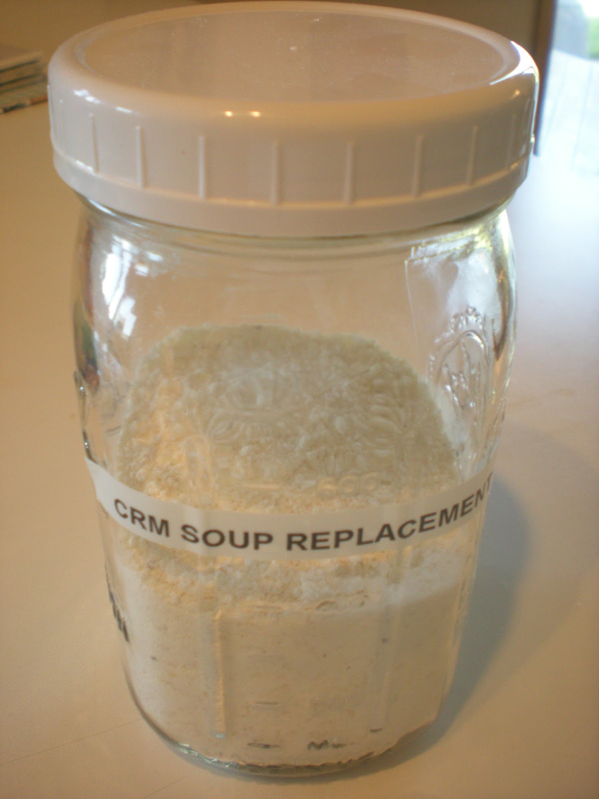 Since we started our adventure to buy less packaged foods and simplify our lives, we have found some really interesting recipes, most of them we share...some are better not passed along!  I am not a fan of the "cream soups" but some recipes call for them.  I found a recipe for a replacement and so far it has worked for the recipes I have used it in.  These ingredients are equal to 8 cans of cream soup.  I store mine in a quart glass Ball jar.