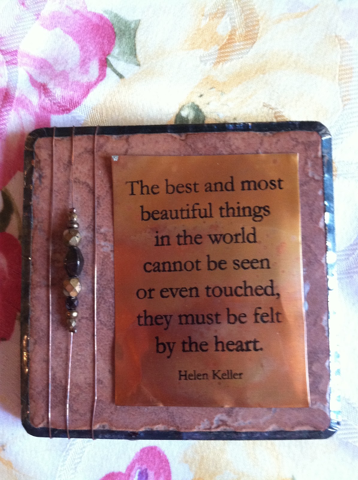 Try this simple DIY project for a gift idea using tile squares for coasters or displaying as a plaque. For a special occasion gift, I decorated a tile using decals and a rubber stamp for my grandson's baptism. I used metal beads with the date of his baptism on the side. I also decorated the back with scrapbook paper and a special quote. You can make a tile for any special occasion. The possibilities are endless! You could use a wedding invitation, your favorite scrap booking paper then decoupage it on the tiles, you can use decals and stickers, you can paint your own design with acrylic paint. You can also use colored tiles and place a quote on another material, such as metal and decorate the coaster with beads, etc.