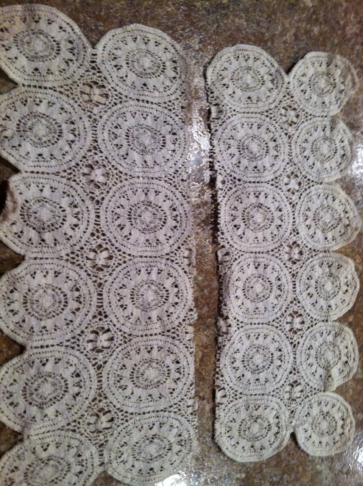 - I wanted different textures so I used 2 doilies for the top of the glass pumpkin. I started with a larger doily and cut the top so it would fit over the pumpkin stem. I applied the Mod Podge and placed the doily over the top. The second top doily fit over the stem so I placed it over the first doily (I didn't use any Mod Podge for this step).
