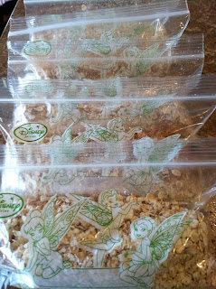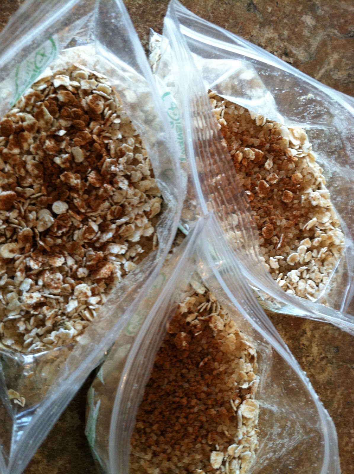 Add your favorite garnishes after cooking. I'm using sliced almonds but my daughter suggested raisins or dried blueberries. Total cost $2.54 for 20 baggies of breakfast!