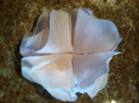 - Place a small amount of glue on the petals closest to the middle and glue them to the middle piece. This will help the flower look more like it's blooming. You can glue any pieces together to get a fluffier flower.