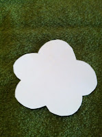 - I made a 5 petal flower template from card stock. I doubled my fabric and cut out the flower using the template as my pattern. It's easier to cut them in layers rather than one at a time. I cut 11 flower shapes because my material was thin. If you use thicker material you would only need 9.