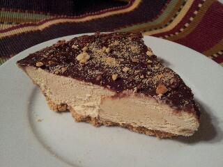 Spread into the graham cracker crust. Pour the melted chocolate over the top of the pie and sprinkle with the chopped peanuts, or graham cracker crumbs. Place the pie in the freezer to set up, about 1 hour. Enjoy!