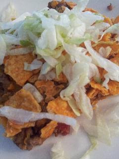 - a few handfuls of broken up Doritos (or nacho flavored chips)
